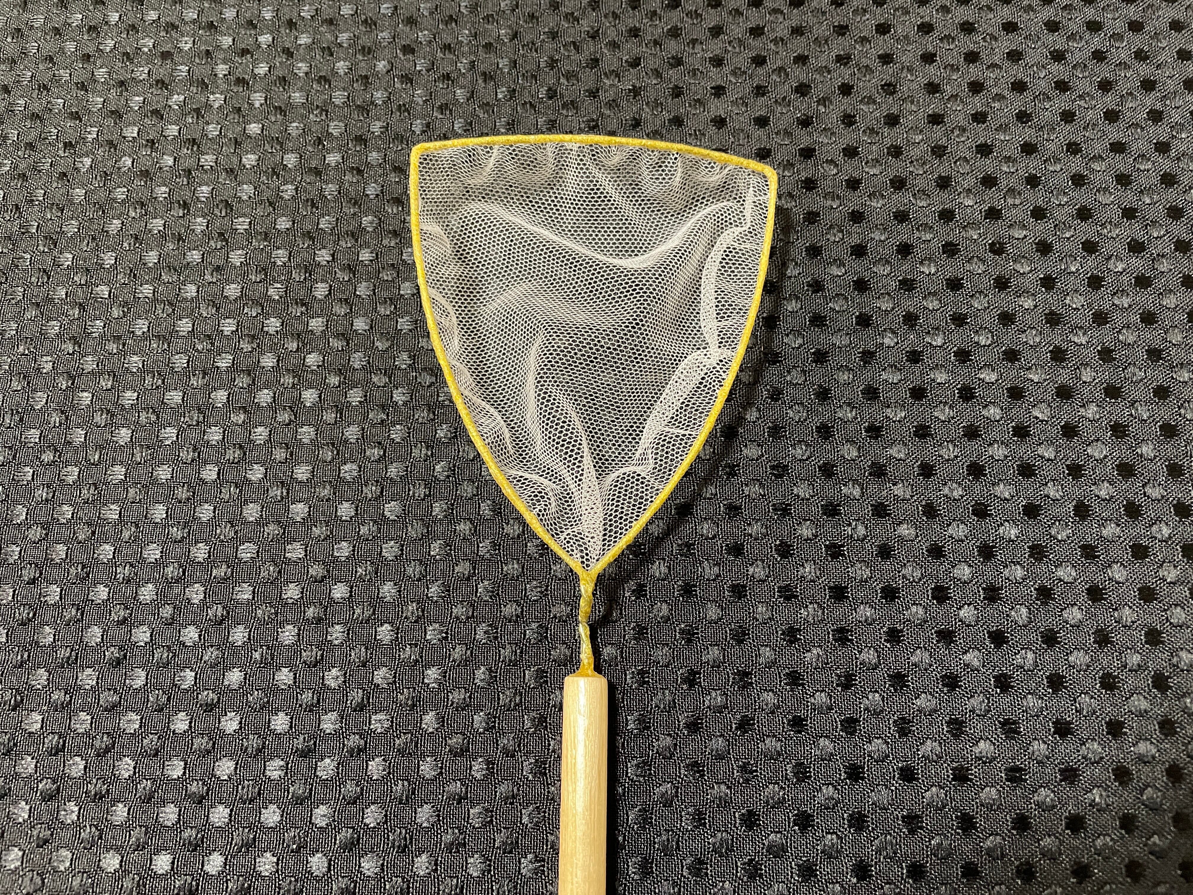 網→約7.5㎝×約8.5㎝ 全体の長さ約40㎝ 網部分にシフォンチュールを使用し、丈夫で柔らかくめだかに優しい網です。 ひとつひとつ手作りのため、大きさに若干の違いがありますのでご了承ください。
